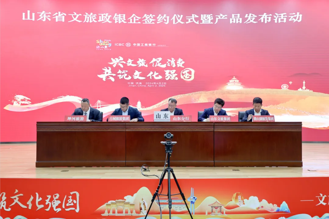 為全力貫徹“建設(shè)文化強(qiáng)國(guó)”的重要戰(zhàn)略,落實(shí)“豐富文旅消費(fèi)”的重要要求,圍繞“興文旅、促消費(fèi),共筑文化強(qiáng)國(guó)”主題,4月2日,中國(guó)工商銀行總行與文化和旅游部文旅政銀企簽約活動(dòng)在北京舉行,山東省文化和旅游廳、工商銀行山東省分行“政銀企戰(zhàn)略合作簽約儀式暨產(chǎn)品發(fā)布系列活動(dòng)”同步在濟(jì)南舉行。山東省文化和旅游廳黨組書記、廳長(zhǎng)王磊,工商銀行山東省分行黨委書記、行長(zhǎng)李峰等領(lǐng)導(dǎo)嘉賓出席儀式。山東文旅集團(tuán)黨委副書記、董事、總經(jīng)理門家春參加會(huì)議。