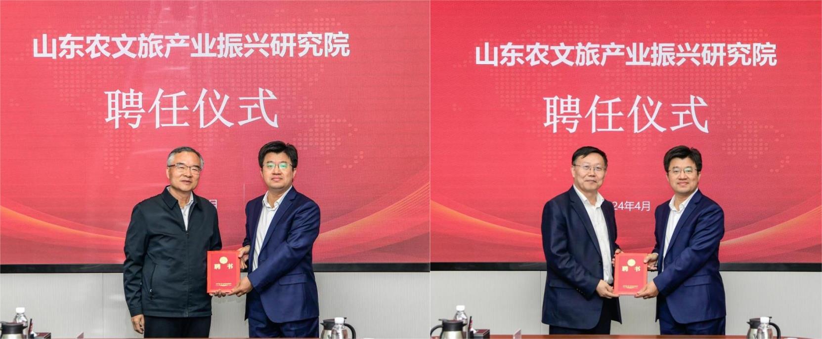 門家春為山東農文旅產業振興研究院名譽院長陳國忠、院長林松柏頒發聘書