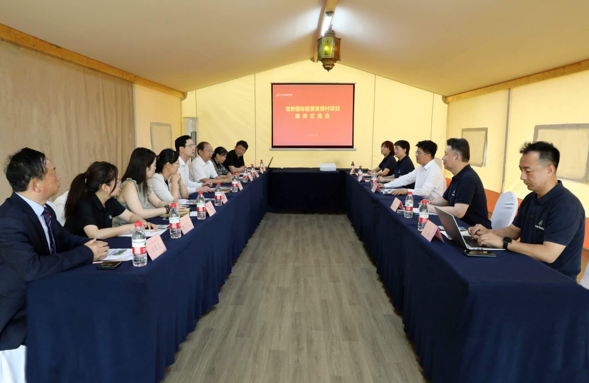 調研期間,門家春與濟南市萊蕪區委常委、區委辦公室主任弭學峰等進行座談交流,對萊蕪區政府對項目發展給予的支持表示感謝。雙方就項目實施有關事宜進行深入探討,并期待在更高層次、更多領域實現合作,合力推動萊蕪區域旅游業的高質量發展。