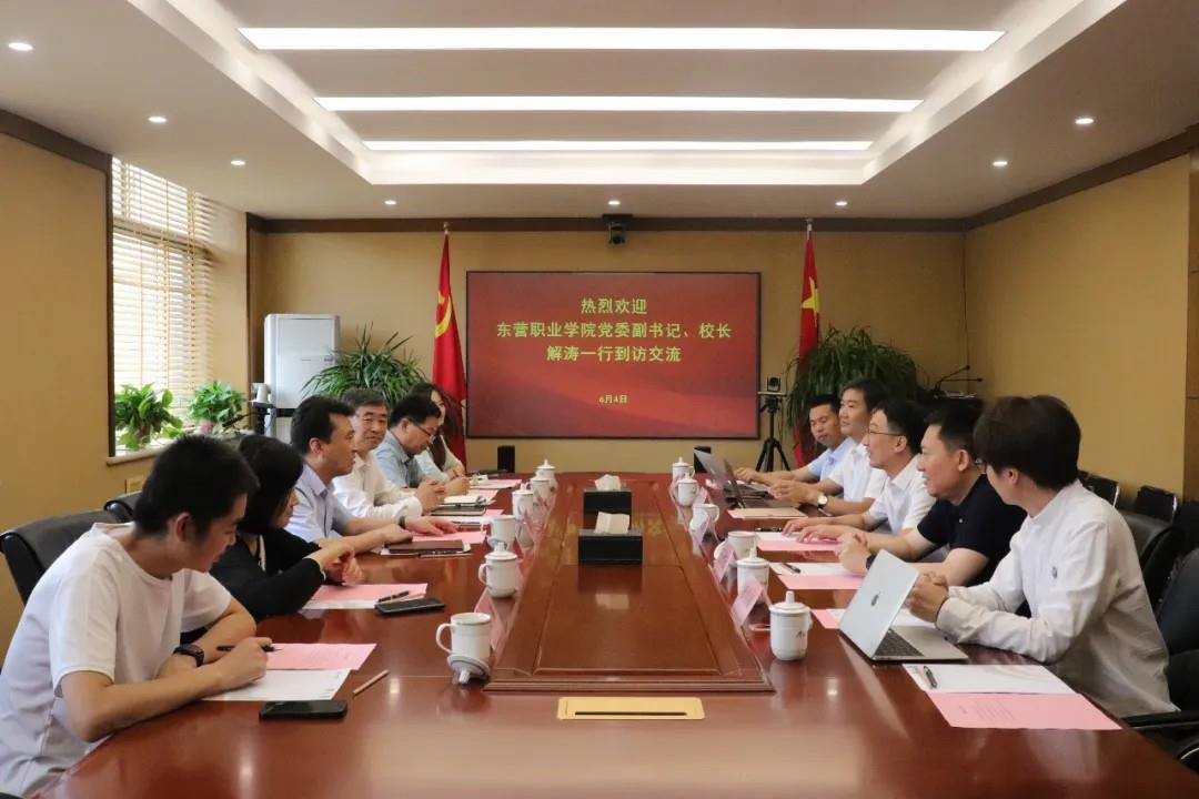 6月4日,東營職業學院黨委副書記、校長解濤到訪山東文旅集團,集團黨委委員、副總經理楊富琛會見。