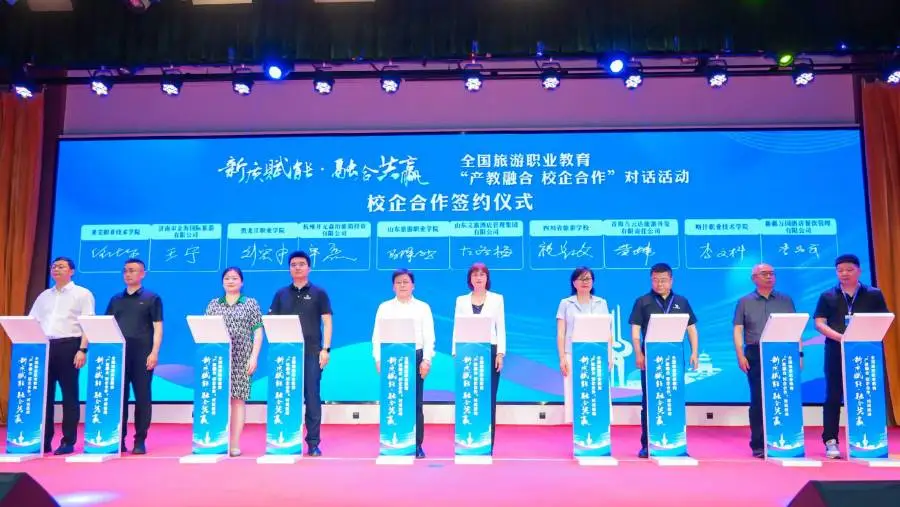 6月27日至28日,由全國旅游職業教育教學指導委員會主辦,文化和旅游部科技教育司、山東省文化和旅游廳、山東省教育廳指導的全國旅游職業教育“產教融合 校企合作”對話活動在山東旅游職業學院舉辦。活動上,山東文旅酒店集團與山東旅游職業學院簽署校企合作協議。