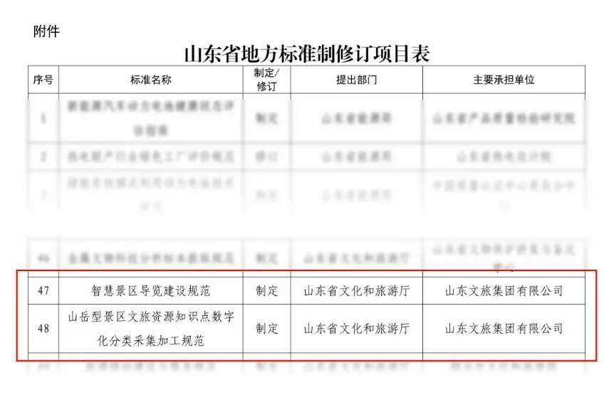 為落實《山東省人民政府關于貫徹<國家標準化發展綱要>推進標準化創新發展的實施意見》的部署,基于國家級及省級課題《復雜山岳景區游客全域位置感知與精準服務應用示范》的核心研究成果,由山東省文化和旅游廳指導,山東文旅集團聯合山東大學分別與中國科學院地理科學與資源研究所、聯通(山東)產業互聯網有限公司共同起草了《山岳型景區文旅資源知識點數字化分類采集加工規范》和《智慧景區導覽建設規范》省地方標準,為研究“山岳型景區精準服務”和“智慧景區導覽建設”提供了標準范本,同時也是我省在文化和旅游領域關鍵技術標準化工作方面的重要突破。