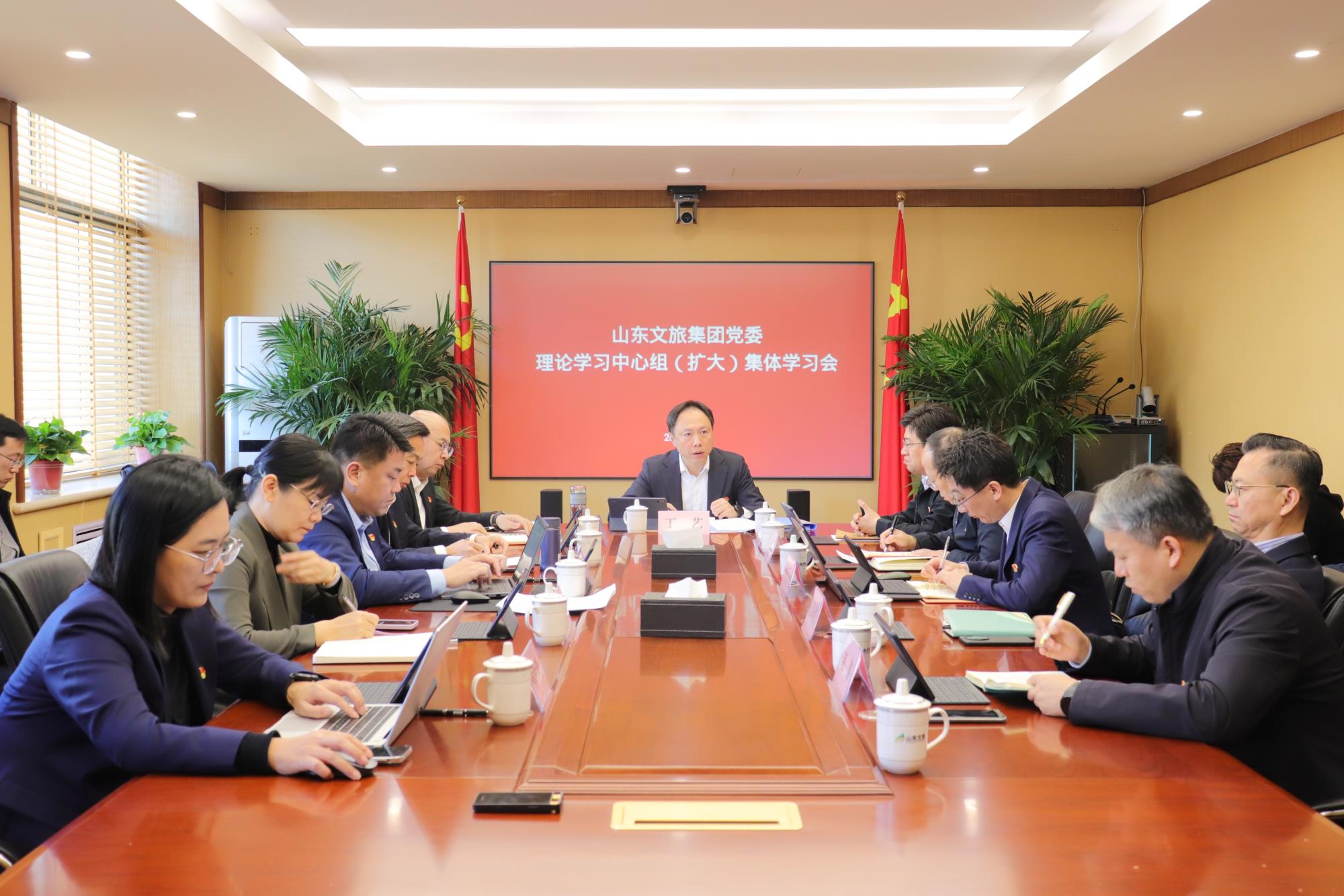 2月24日,山東文旅集團黨委書記、董事長丁藝主持召開集團黨委理論學習中心組(擴大)2025年第2次集體學習會,圍繞深入學習習近平總書記關于黨的自我革命的重要思想、深入推進黨的自我革命、堅決打贏反腐敗斗爭攻堅戰持久戰開展學習交流。集團黨委副書記、職工董事、工會主席孫超,集團紀委副書記尹立軍作交流發言。