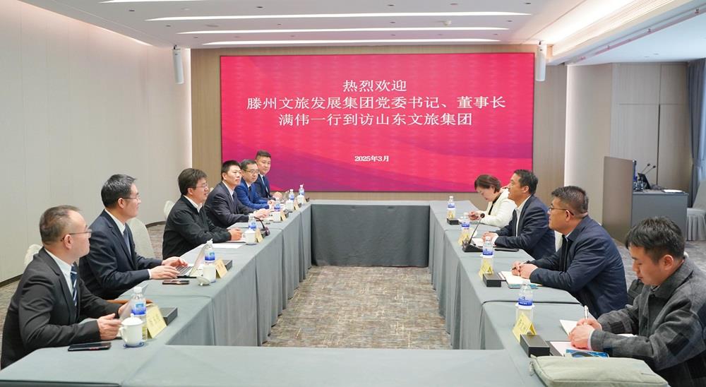 3月14日,滕州文旅發展集團黨委書記、董事長,微山湖濕地集團黨委書記、董事長滿偉率隊到訪山東文旅集團,并實地參觀泉城大酒店。山東文旅集團黨委副書記、董事、總經理門家春會見。