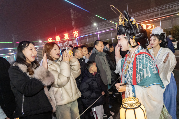 工作人員介紹,游客可先在城樓下看開場迎賓,主街上偶遇「旗袍快閃」,茶樓里聽一曲獨奏,說不定能偶遇吸引眼球的武打片段,全員巡游時,老濟南風情將華麗登場。