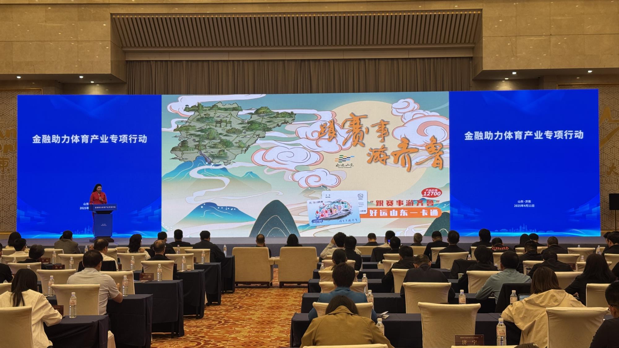 4月11日下午,“金融助力體育產業專項行動”在濟南正式啟動,集團黨委副書記、董事、總經理門家春出席活動。現場,由山東省體育局和山東文旅集團共同推出的體育行業旅游年卡“跟賽事游齊魯”好運山東一卡通產品發布。