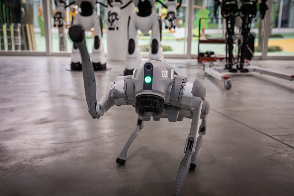 宇樹科技GO2pro機器狗化身“超能導游”,跳躍、伸懶腰、握手、坐下、跳舞、翻跟頭、倒立行走等指令統統不在話下,完全是一只能陪你瘋、幫你忙的賽博寵物。此外,在醉東風的未來田園藝術中心,元宇宙體驗設備、VR體驗設備等也將帶游客踏入由數據流編織的異想世界,讓人腎上腺素飆升。